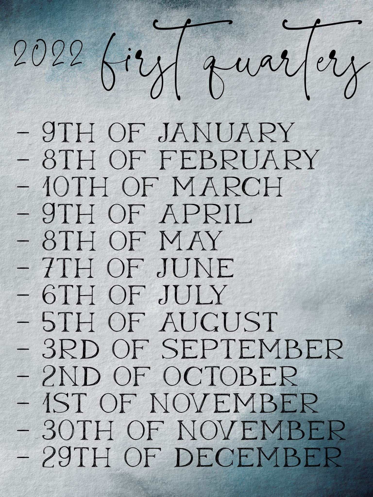 Spiritually, the First Quarter moon is a time of action and a time to commit moving forward towards your goals. With this moon phase comes a huge surge of energy and inspiration; we are moving closer to the Full Moon and this is a time to embrace your passions.