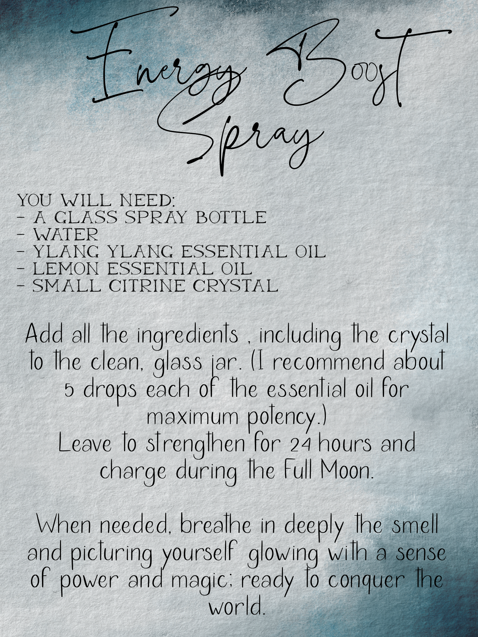 Even after all the coffee and sunshine, we can still feel a little deflated and it can be hard to keep up the motivation when dreams take a little longer to come into fruition. This simple but effective spray is the perfect way to bring you a boost of energy and magic when you need it!