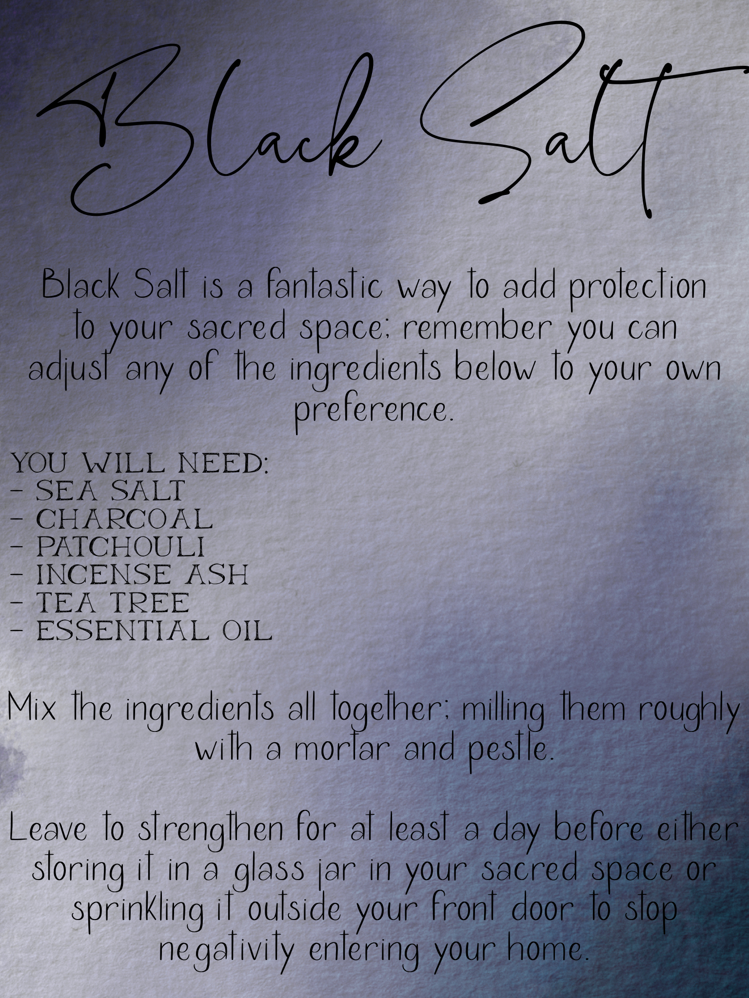 Once you’ve spent some time cleaning, use your favourite incense or sage sticks to cleanse your space. A fantastic and magical tool to use is ‘Black Salt’, renowned for it ability to protect, purify and block negative energies from your space.